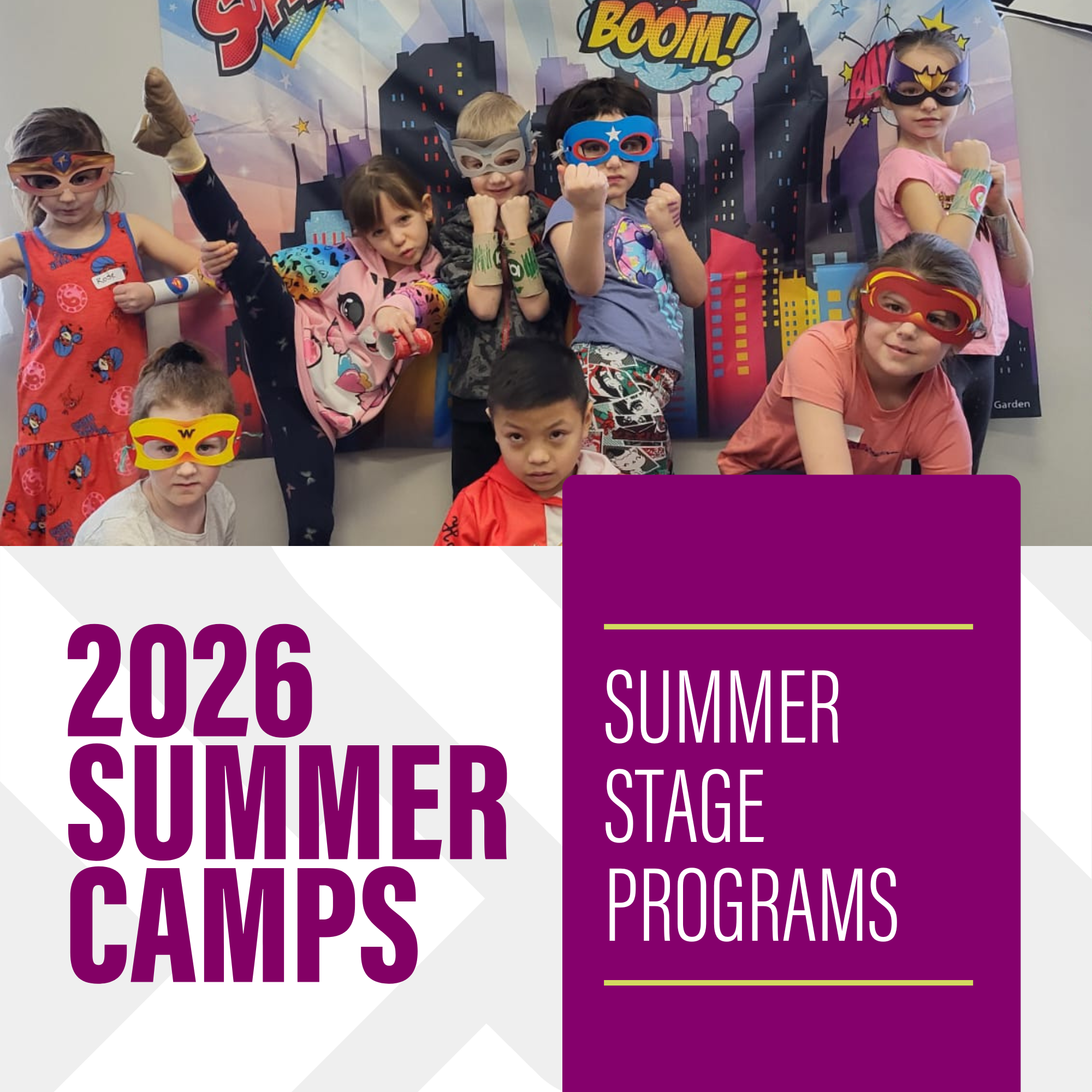 Get ready for an electrifying adventure where music is your ultimate weapon! In this KPop Demon Hunter themed musical theatre camp, performers will learn high-energy choreography, dynamic vocals, and dramatic storytelling while bringing an epic demon-hunting story to life. The week ends with a Golden showcase where talent, teamwork, and fierce performance take center stage.